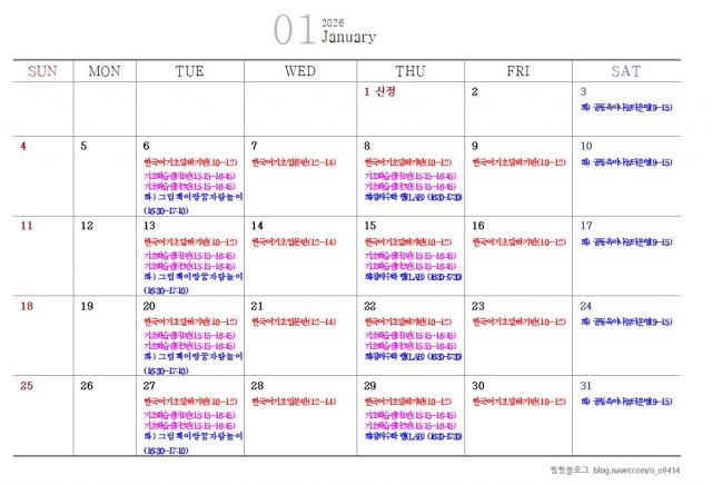 2026³â 1¿ù ÇÁ·Î±×·¥ ÀÏÁ¤Ç¥